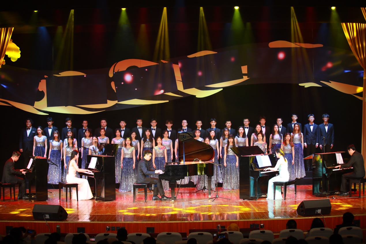 晚会由四个篇章组成。第一篇章《爱我黄河》,来自当代大学生对中华民族“母亲河”——黄河的精神追问与讴歌,在筝鼓合奏“霸王别姬”、师生朗诵“黄河即景”、磅礴合唱“保卫黄河”的精彩演出中渐渐走向恢宏。第二篇章《丝路之路》,女群舞“飞天”、韵味悠长的民乐合奏“敦煌”和西域风情的合唱,将观众带入漫漫丝路的情境之中。第三篇章《海上明月》,老上海的歌曲“串烧”与新上海风貌的“舞蹈剧场”,让观众在新旧时空中徜徉。第四篇章《追梦中国》,师生合唱新时代赞歌,主题朗诵将整场演出推向高潮。演出过程中,现场观众充分融入其中,掌声欢呼声不断,深刻表达了东华师生对祖国的无限热爱和美好祝愿。