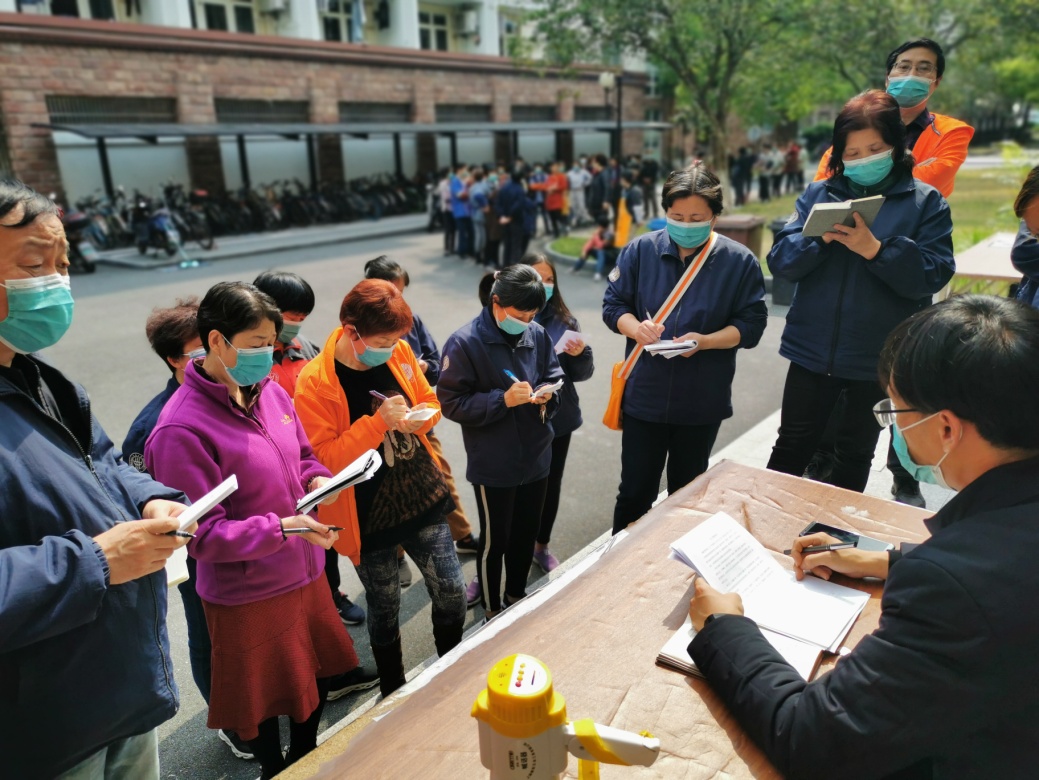 “请提前准备好返校承诺书、校园卡、本人‘随申码’,有序排队,进行测温。”“请保持一米距离,有序用餐。”循环播放的温馨提示语,渲染着开学返校的闹忙与欢喜。4月24日,学校在松江和延安路校区举行2020年春季学期学生开学返校准备演练,为了让方案举措落地,让流程细节接地,教师志愿者们扮演返校学生全程参加了演练。