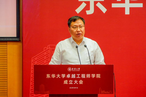 刘承功在讲话中表示,卓越工程师学院的成立,是学校深入贯彻落实科教兴国、人才强国、创新驱动发展战略的创新举措,也是奋力谱写“教育强国、东华何为”崭新篇章的有力行动。要建新体系,以新时代党的教育方针为引领,探索全新的人才培养体系,推动形成校企深度融合的卓越工程师培养新范式;要解真问题,对接企业产业现实工程技术创新需求,凝练具有牵引性和承载力的“硬核”项目,深化“项目制”“订单式”人才培养新模式;要求实效果,以实实在在的改革措施、培养机制、研究课题,推动产教融合育人取得新成效、校企协同创新产出新成果。他期待卓越工程师学院努力建成工程硕博士培养改革创新和高水平工程教育的“示范样板”,为推进中国式现代化建设作出应有贡献。