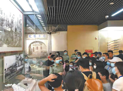 南昌八一起义纪念馆内,讲解员在为观众讲解。