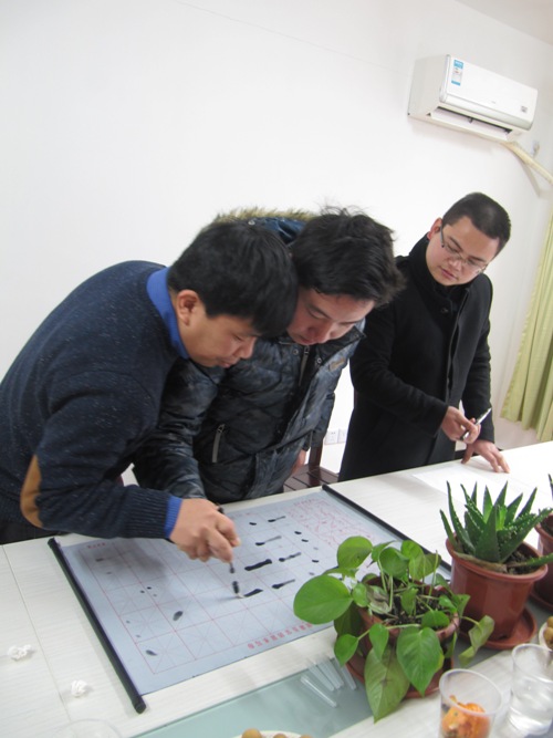 执有软笔书法九级证书的专职辅导员朱佳樑担任本次活动主讲,他从毛笔的舔笔、执笔以及书写姿势开始教授书法精髓,强调书法对修身养性的作用。在他的指导和示范下,与会辅导员从书法比划“点”和“横”开始练习,看似简单的一笔,却蕴含了许多书写技巧,其中,陶康乐、李华婷以及实习生黄铭心的练习作品各具特色。