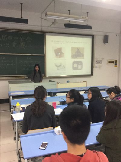 1119日晚,外语学院英语11级毕业班学生党支部在松江校区第二教学楼举办十八届四中全会精神知识竞赛。支部成员分为两组,竞赛分为两个部分。