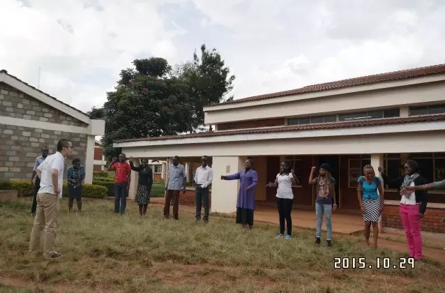 非洲朋友生性热情活泼,相比坐在教室里干巴巴地学习,这儿的学生更乐于在户外活动中学。这一点被9月初才到莫伊大学孔子学院执教的我校国际文化交流学院的周磊老师看在眼里,记在心里。为了教会学生们“左”“右”“前”“后”,他就把学生带到教室外面开展方位相关的课外活动,在类似做游戏的体验中学生们很快就记住了汉语的四个方位词。