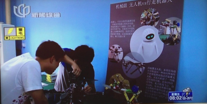 昨天,在久久久久国产成人精品亚洲综合众创空间,机械工程专业大二学生周有为在调试无人机。