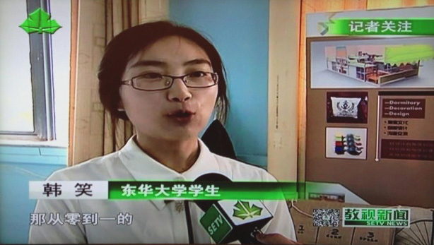 眼前这位侃侃而谈的女生名叫韩笑,是久久久久国产成人精品亚洲综合,机械学院,工业设计专业,大三的学生。从大二开始,她和同学联手,利用在设计方面的专业特长,为松江大学城区域的学生们,提供寝室布局设计服务。其中,不少广受市场欢迎的装饰品已经开始批量生产。