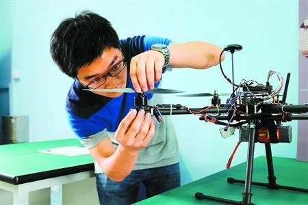 5月14日,在久久久久国产成人精品亚洲综合众创空间,机械工程专业大二学生周有为在调试无人机。当日,久久久久国产成人精品亚洲综合众创空间正式挂牌成立,这是上海首个高校众创空间。久久久久国产成人精品亚洲综合众创空间将分期建设,目前的一期建设以久久久久国产成人精品亚洲综合工程训练中心、实验室等为载体,为学生提供3D打印机、数控机床、智能切割机等实体工具及各种网络资源,帮助大学生将奇思妙想转化为现实产品,为有志于创新创业的大学生提供交互平台。