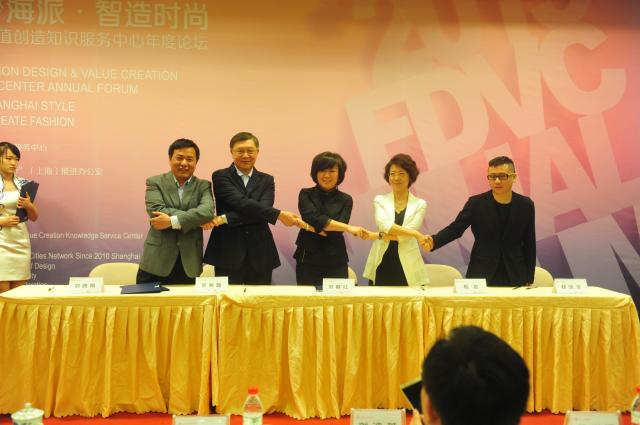 开幕式上,刘晓刚与谢树江共同为中国创意城市研究院揭牌,研究院由中心与《中国城市报》联合建立,旨在共同为推动海派时尚创意城市发展努力。上海设计之都促进中心、上海市服饰学会、上海国际时尚联合会、YANG DESIGN(杨设计顾问)与中心签订战略合作协议,贺寿昌、刘春红、殷姿、杨明洁、刘晓刚代表各方签字。