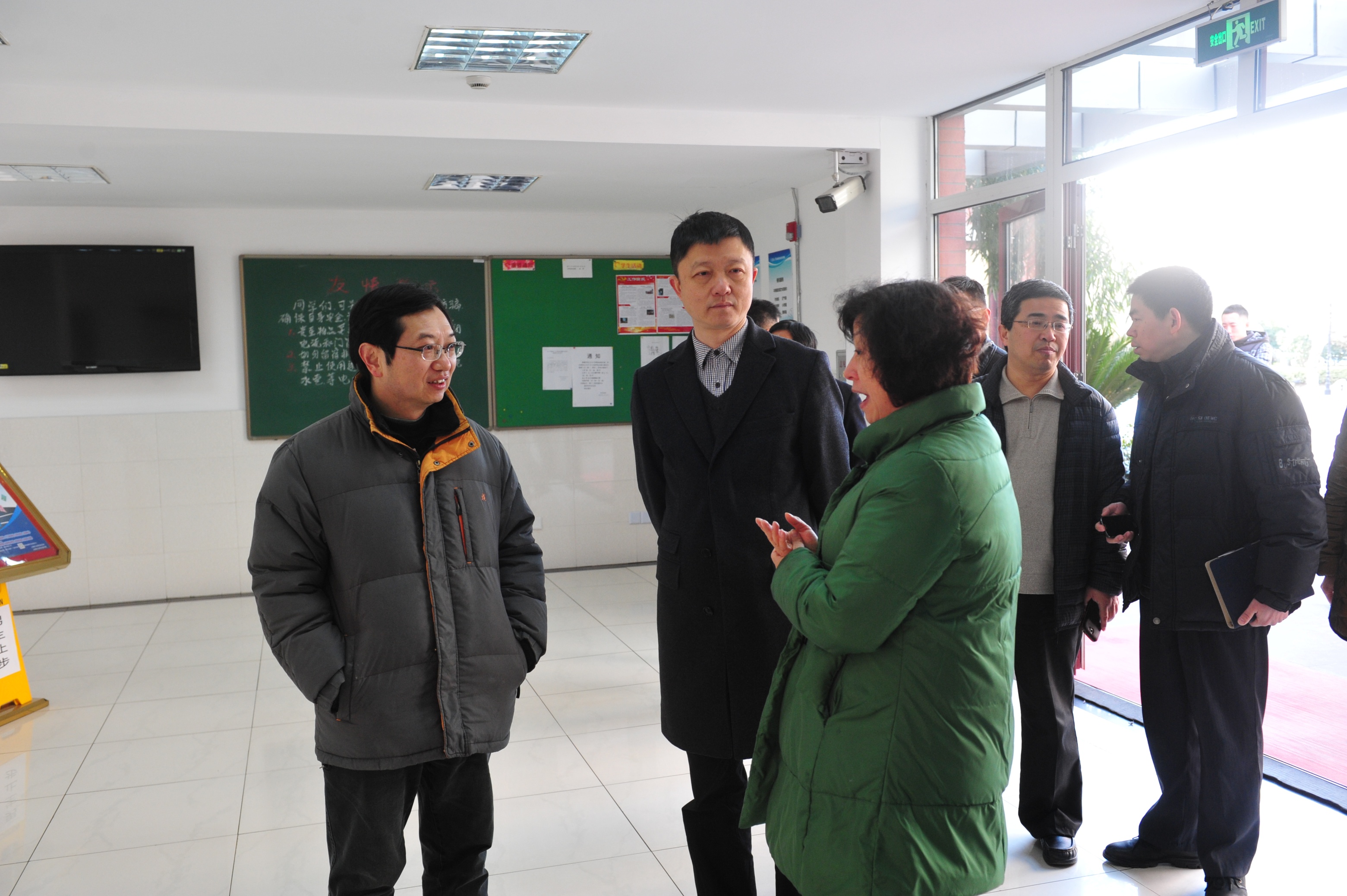 (邱高、陈革听取宿管人员介绍宿舍生活保障情况)