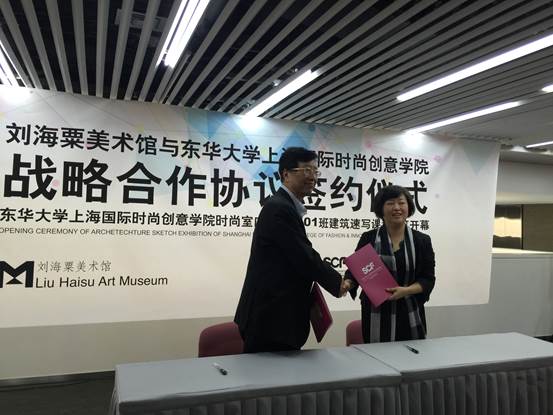 刘春红、朱刚代表双方签订战略合作协议,协议贯彻《上海市文教结合2015年工作要点》《上海市文教结合三年行动计划(2016-2018年)》等文件精神,在“SCF—刘海粟美术馆”时尚创意中心建设、时尚创意教育“开放”课堂、艺术工作坊、“艺术无限”讲座等多方面达成合作意向。