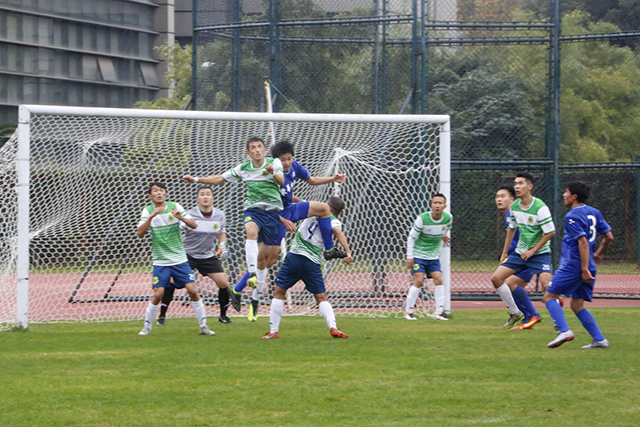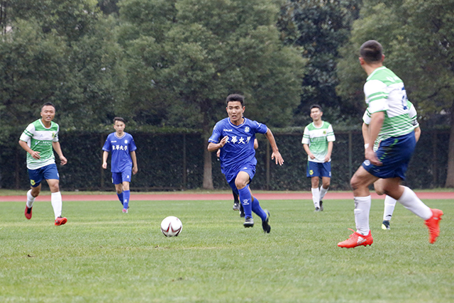 本次比赛我校以全胜的战绩挺近决赛,再次对阵去年决赛对手华东政法大学队。开场十分钟,对方球员在中前场多次分球、突破,攻势凶猛,但未能给我队造成太大威胁。第三十分钟, 18号李勇学主罚任意球率先为我方赢得一分,此后我方又屡次对方球门造成威胁,但在上半场结束前并未获得突破。下半场开始,我方稳住心态,加强对节奏的控制,对方则越踢越着急,我队牢牢把握对方心急这一弱点,终于在第七十分钟,17号金光主罚任意球再次破门得分,我校以2比0的比分锁定胜局,再次战胜华东政法大学,卫冕男子甲组冠军并实现三连冠。除比分外,从数据上看,我校控球时间、射门次数、获得任意球、角球次数也均在对方之上。