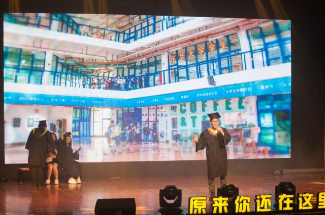 “陪我在东华的路上走一走,直到所有的灯都熄灭了也不停留”……带着东华的四年回忆,带着师长的谆谆嘱托,毕业不说再见,现场不少毕业生潸然泪下,晚会在一首改编自《成都》的《东华》歌曲中落幕。