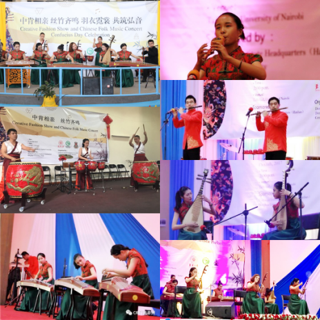 9月28日至10月8日,我校学生艺术团一行20人赴非洲肯尼亚孔子学院开展巡演活动。此次巡演作为我校承办孔子学院总部/国家汉办的首次三巡项目,赴肯尼亚莫伊大学、内罗毕大学、肯雅塔大学、埃格顿大学四所大学的孔子学院开展演出,把最具中国传统文化特色的民乐演出和融汇了中非元素的时尚设计带到非洲。巡演覆盖了目前在肯尼亚开设的所有孔子学院,这是我校学生艺术团首次走出国门展示东华学子风采,也是中国的大学生艺术团首次赴肯尼亚孔子学院演出。巡演获得了四所高校师生和在肯华人华侨代表的一致好评和连口称赞,中国驻肯尼亚大使馆刘显法大使出席在内罗毕大学孔子学院的演出。四所大学的学校领导、孔子学院中方和外方院长分别观看了演出。中国国际电视台、中国国际广播电台国际在线、新华社、China Daily(中国日报)等媒体对巡演活动进行了报道。