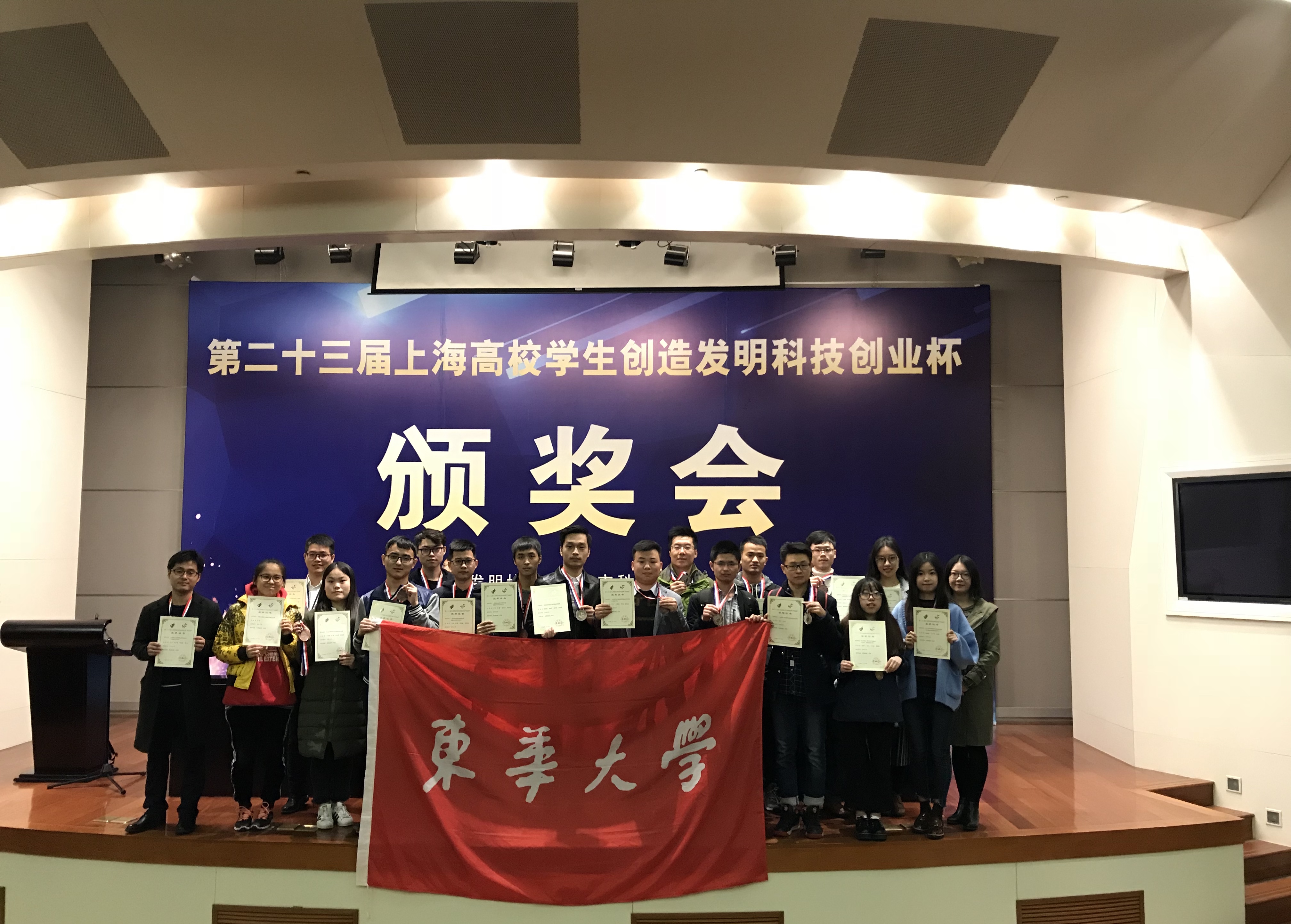 11月18日,从第23届上海高校学生创造发明“科创杯”奖颁奖会上传来喜讯,我校学子在本次评选中再创佳绩,共获发明创新奖23项。其中,环境学院张禾完成的“印染污泥水热减量资源化技术”获发明创新一等奖,材料学院王宝秀等同学完成的“程序性释放VEGF的细菌纤维素基支架材料的制备及在组织工程尿道中的应用研究”、环境学院吴军等同学完成的“中国城市环境雾霾污染物防治及个体防护技术研究”等5个项目获发明创新二等奖,材料学院姚晶晶同学等完成的“基于纳米纤维素有序组装的高性能与多功能纤维的制备及应用”、纺织学院朱胤达等同学完成的“一种全织物足底压力分布测试鞋垫的开发”等17个项目获发明创新三等奖。
