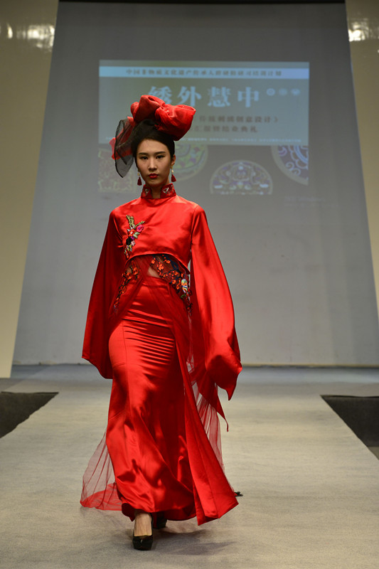 11月27日下午,我校第二期中国非物质文化遗产传承人群研修研习培训计划《传统刺绣创意设计》研修班成果汇报暨结业典礼在延安路校区举办。上海市文化广播影视管理局公共文化处非遗处副处长葛永铭,上海工艺美术职业学院继续教育学院院长周星,服装与艺术设计学院党委书记袁孟红、院长李俊、副院长冯信群、党委副书记刘燕萍、非遗课程责任教授陈彬及课程教师代表等参加活动。研修班成果汇报通过静态和动态秀的形式分别展出本期非遗研修班学员的独立创作作品和结对创作作品,呈现民族传统文化与现代时尚相结合的新风尚,弘扬“为民族传承,为生活创新”的非遗精神。