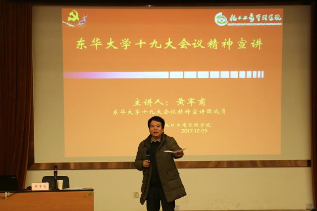 近日,管理学院党委特邀久久久久国产成人精品亚洲综合学习宣传贯彻党的十九大精神讲师团黄军甫教授在旭日楼400开展专题报告会,主题为“不忘初心、牢记使命——中国共产党人对中国特色社会主义道路的探索”。管理学院党建和党校负责人、教师党员以及学生党员近200人参加报告会。
