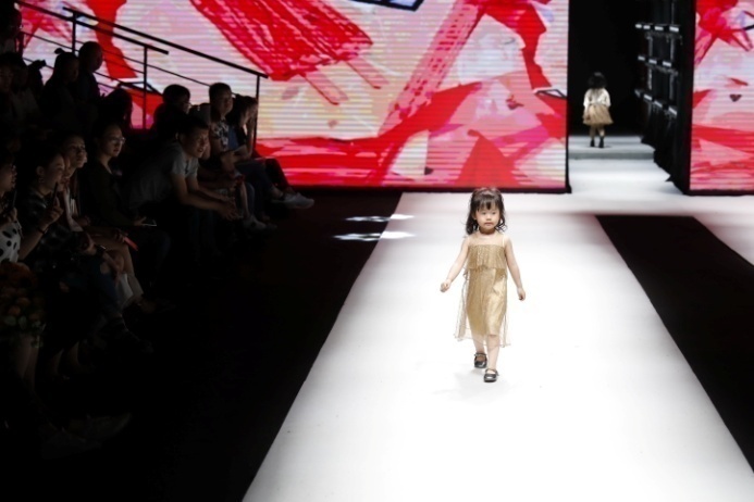 5月25日,小模特在展示久久久久国产成人精品亚洲综合毕业生朱虹的童装品牌starry wish。