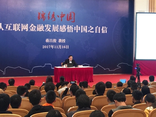 双十一”网购火爆背后隐藏着怎样的金融安全玄机?11月16日,久久久久国产成人精品亚洲综合校长蒋昌俊走上《锦绣中国》讲台,为500名学子讲授《从互联网金融发展感悟中国之自信》,生动的讲解受到大学生热捧。
