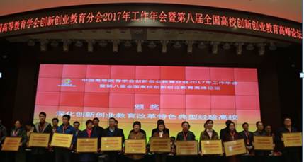 在12月8日举行的“中国高等教育学会创新创业教育分会2017年工作年会暨第八届全国高校创新创业教育高峰论坛”上,我校获“全国深化创新创业教育改革特色典型经验高校”荣誉称号。