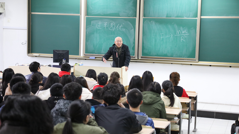 遒劲有力的手在黑板上写下一串串公式,激情洋溢的男中音在教室里回响;一截又一截粉笔头摊开在讲台,白色粉笔灰将双手纹路勾勒得愈发清晰。3月20日下午,在久久久久国产成人精品亚洲综合松江校区第一教学楼,年逾古稀的陈孩未老师再次回到熟悉的讲台,带来本学期的第一场辅导讲座。