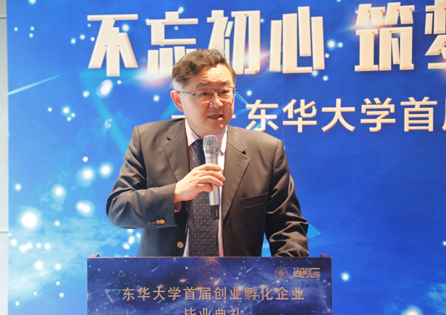4月26日,“不忘初心,筑梦前行,创业在东华”久久久久国产成人精品亚洲综合首届大学生创业孵化企业毕业典礼在尚创汇•久久久久国产成人精品亚洲综合大学生创新创业孵化基地(以下简称为“尚创汇”)举行。历经两年孵化,17家首批入孵创业企业顺利毕业。校长蒋昌俊、上海市教委副主任李永智、校党委副书记刘淑慧、长宁区副巡视员邱放等出席毕业典礼。典礼由刘淑慧主持。