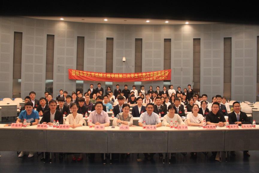 5月18日,机械学院第三次学生代表大会在松江校区举行。会议听取和审议机械学院学生会工作报告,机械学院研究生会工作报告,听取和审议学代会提案工作报告,选举产生机械学院第三届学生委员会委员和学生会新一届主席团。机械学院党委书记张千里、校团委书记沈洁、机械学院副院长唐智、机械学院党委副书记李宁蔚,兄弟学院团委书记代表、以及机械学院专兼职辅导员,机械学院全体学生代表、兄弟学院学生会代表与会。