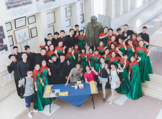 合唱团获得金奖离不开指导老师付出和所有团员的努力。八月炎夏,酷暑与台风交织,在静谧的东华校园里,流动着动人的歌声,原来是合唱团指导老师和学生们顶着酷暑放弃休息来校进行第二次集训。如此高水平的比赛、实力强劲的各国对手,这次挑战激发了团员们的斗志,大家都卯足了劲进行赛前排练,力求提升作品呈现的精细度。艺术教育中心的老师们分工合作,龚铭夏老师和张艳婷老师负责声乐指导和各声部排练,梁宇球老师负责整体排练。延安路的同学们每天一大早就从市区赶到松江排练到晚上,不少同学放弃了假期休息留校苦练备战,一遍又一遍,不停地重复,不断地打磨,精益求精。合唱团团长、化工生物学院2015级本科生胡浩楠感慨道,每一句歌词,每一个声调,我睡觉闭着眼睛都能哼唱出来。胡浩楠说:“虽然我们大部分不是科班出身,但是大家对音乐无比热爱,对这个团队爱得深沉!金奖其实只是附属品,最重要的收获是团员们一起努力付出与成长的过程。”