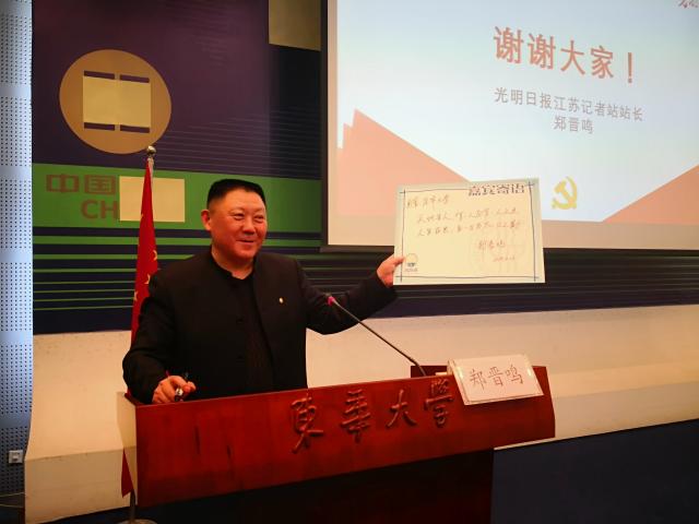 3月13日,光明日报社长三角地区党工委书记、江苏记者站站长、高级记者郑晋鸣教授做客我校第332期周周讲,结合个人从业数十年以来的采访经历,历数党的干部孔繁森,汶川地震英雄机长邱光华,三十二年守岛英雄王继才、王仕花夫妇等时代楷模的典型事迹,以亲历者的独特视角,讲述了他笔下的平民英雄及传递的时代楷模精神。