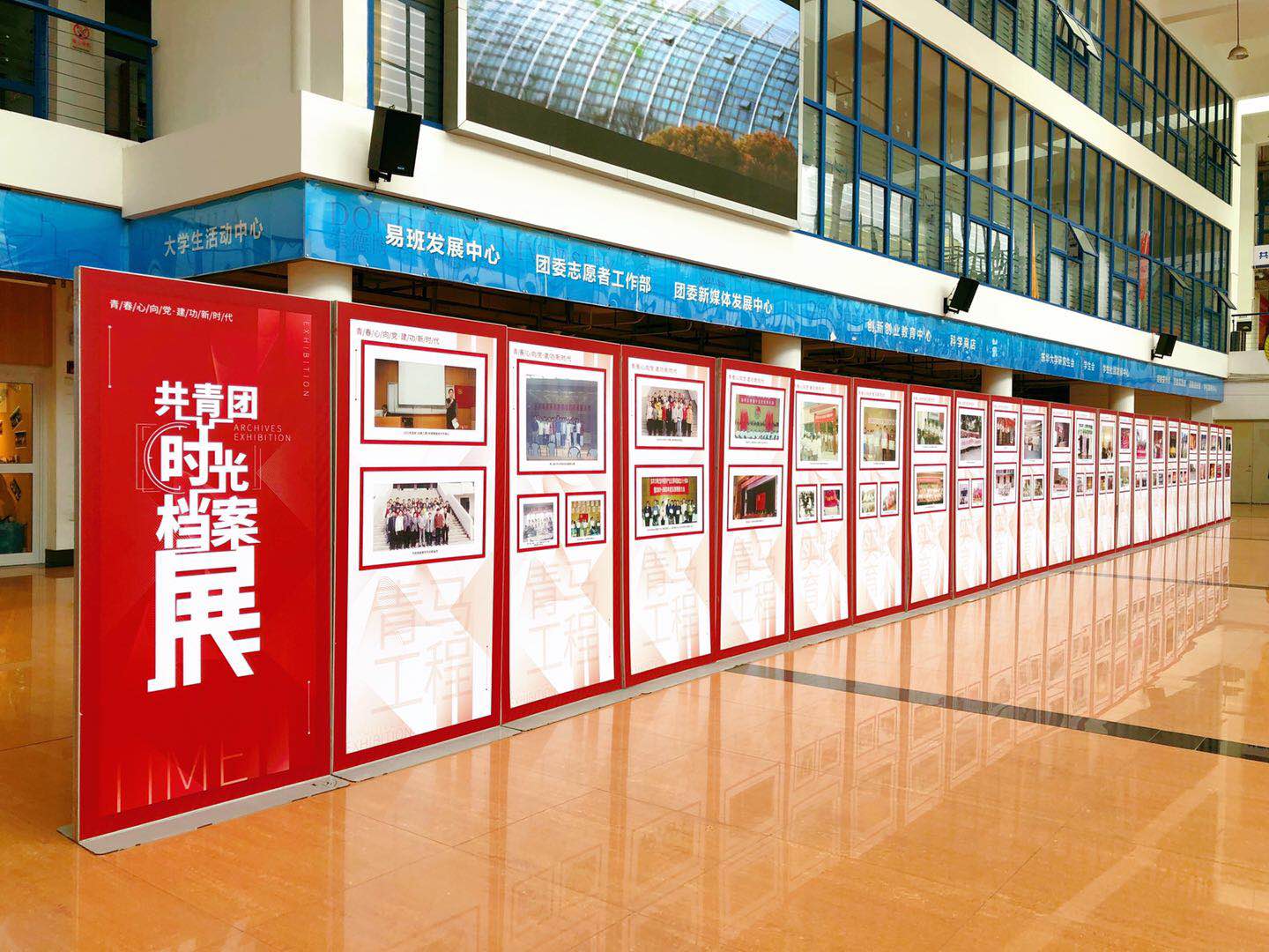展览以“青马工程、实践育人、科技创新、校园文化”四条主线为序,共23个版面57张珍贵照片,详实生动地展示了学校建立团组织至今,在学校党委的领导下,东华青年不忘初心、砥砺前行的奋斗经历。时光展还展出了三件实物,包括2005年第九届挑战杯全国大学生课外学术科技作品竞赛优胜杯奖杯、2010年“志在愿在,锦绣东华”世博会志愿者徽章以及2011年久久久久国产成人精品亚洲综合出版社出版的《中国大学生调查报告》,并发起青春档案代言人的招募公告。