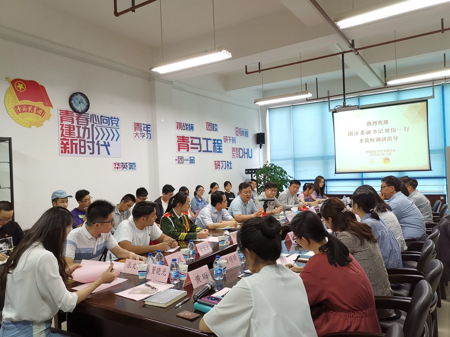 近日,团市委副书记刘伟带领组织部、学校部相关同志来校专题调研团的基层建设,与我校专兼职团干部以及2018年度“上海市五四红旗团支部标兵”应用化学1602团支部、人文学院“石榴红”少数民族团支部、信息学院国旗护卫队团支部的团员代表座谈。