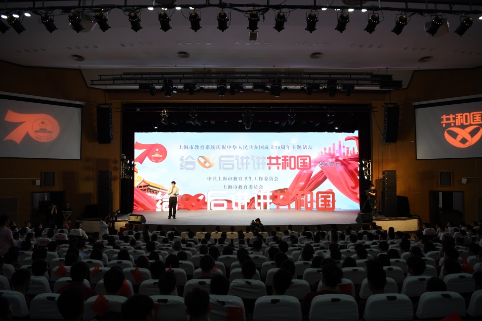 9月19日上午,上海市教育系统庆祝中华人民共和国成立70周年主题活动“给00后讲讲共和国”特别节目在我校松江校区举办。市教卫工作党委副书记、市教委副主任李昕,松江区副区长龙婉丽以及校党委书记刘承功、党委副书记刘淑慧、副校长陈南梁出席活动。
