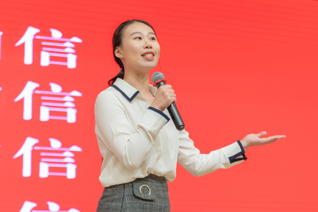 服装与艺术设计学院李杰以“让‘新时尚’的生活,为美丽中国插上腾飞翅膀”为题,从城市发展变迁带来的资源浪费和环境污染问题引出生态文明建设的理念,号召广大青年学生从垃圾分类等日常行动中做起共同建设美丽中国;纺织学院乔悦以“坐‘自信号’列车,与新时代共奋进”为题,通过“自信号”列车引入,将“四个自信”融入其中,带领广大学生深入理解并真正认同“四个自信”。
