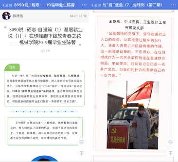 学院认真落实“停课不停学、停课不停教”的要求,带领学生在线学习,帮助学生答疑解惑,促进学生在战“疫”中思想、学业同进步。开展《战“疫”同心,致学同行——如何做好线上学习不掉队》和《疫情之下,就业我来帮》等微课,为非毕业班同学指导线上学习要点,为毕业班同学春季校园招聘提供助力。组建师生咨询群、了解学生对在线教学的感受和评价、开展优秀学生笔记征集等,让机械师生携手“云端”,共同上好在线教学课程。
