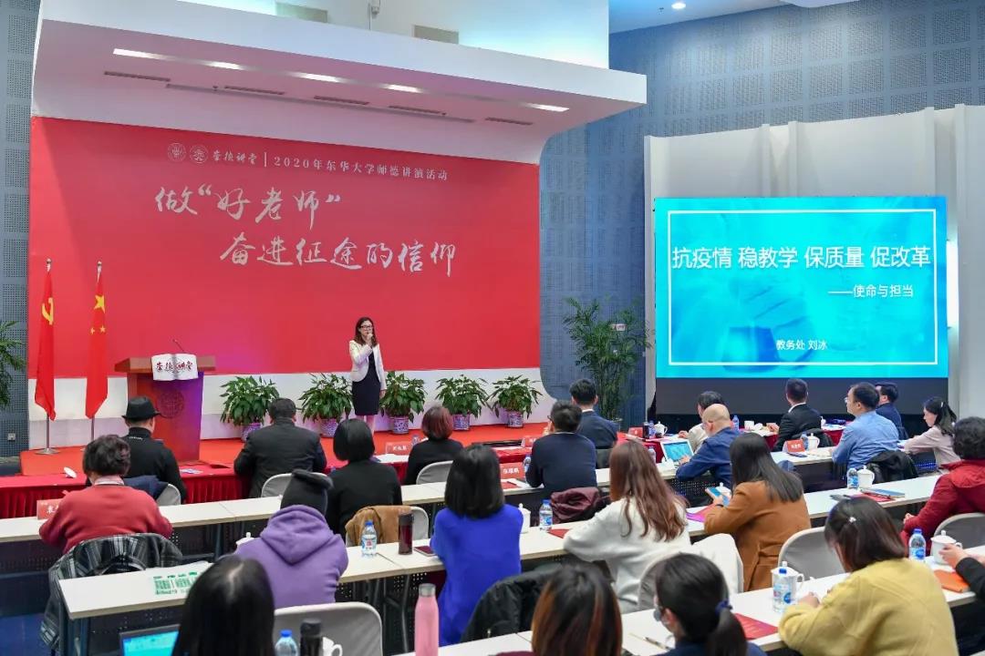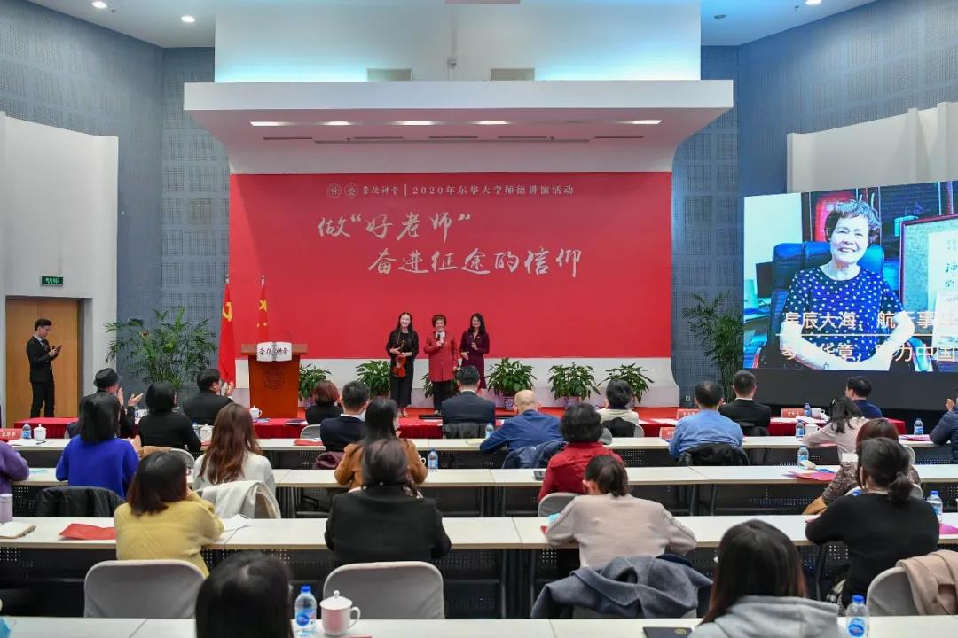 学校师德讲演活动已连续举办三年,通过深入一线、深入课堂、深入师生发掘师德典型,让东华师德故事永流传。广大教师在讲述身边真切的师德故事中受教育,涵养师德师风,推动全员全过程全方位的师德养成。本次讲演活动分初赛和决赛,共有来自二级单位党组织的21个讲演节目参加,12个节目入围决赛。