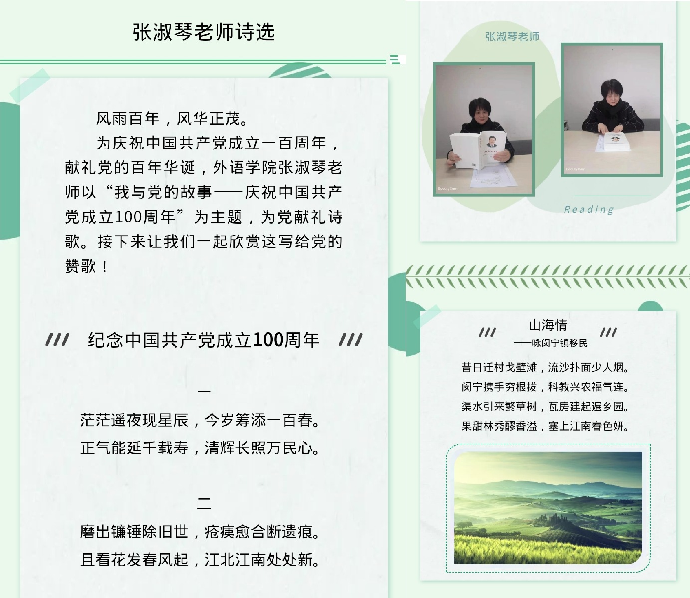 “激昂发声,唱响党史学习主旋律”。外语学院党委坚持紧扣“为什么学习党史”“学什么党史”“怎样学习党史”三大问题,充分利用新媒体平台,打造极具专业特色的虚实结合的党史学习平台,面向全院师生开展红色征集令——我与党的故事,使党史文化理论更具有吸引力,促进党史文化真正实现“入脑、入心”,坚持做好学院师生党史学习教育的“传声筒”;依托“东华外院新闻站”公共号开辟党史学习微专栏,易班平台开展“党史故事我来讲”等丰富多彩的活动平台,坚持党史学习教育的引领地位,以此发挥出党史学习教育的强大育人功能;通过利用互联网创设教学情境,打造“互动式+体验式”党史学习新课堂,将党史融入学院全员、全程、全方位育人大格局,打通党史学习教育“最后一公里”,将党史的滋养转化为全院师生的政治本色,奋斗的行动动力。