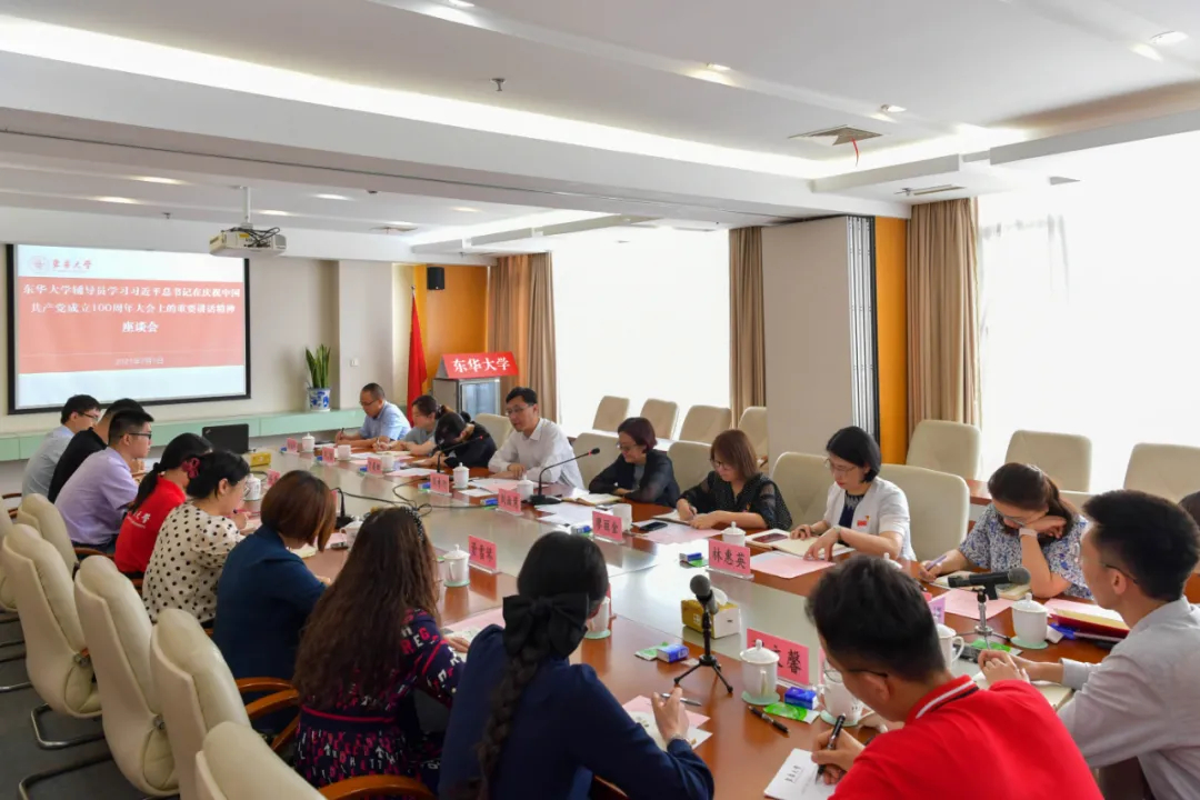 辅导员学习习近平总书记在庆祝中国共产党成立100周年大会上的重要讲话精神座谈会同期举行。党委书记刘承功、党委副书记刘淑慧出席。学院党委副书记代表及一线辅导员代表围绕“落实立德树人根本任务”“开展好面向学生的党史学习教育”“思政教育助力学校‘双一流’建设和‘十四五’发展”等踊跃发言,纷纷表示要深入学习习近平总书记重要讲话精神,以高度的政治责任感和使命感,在铸魂育人的思政教育工作岗位上做出新的更大贡献。