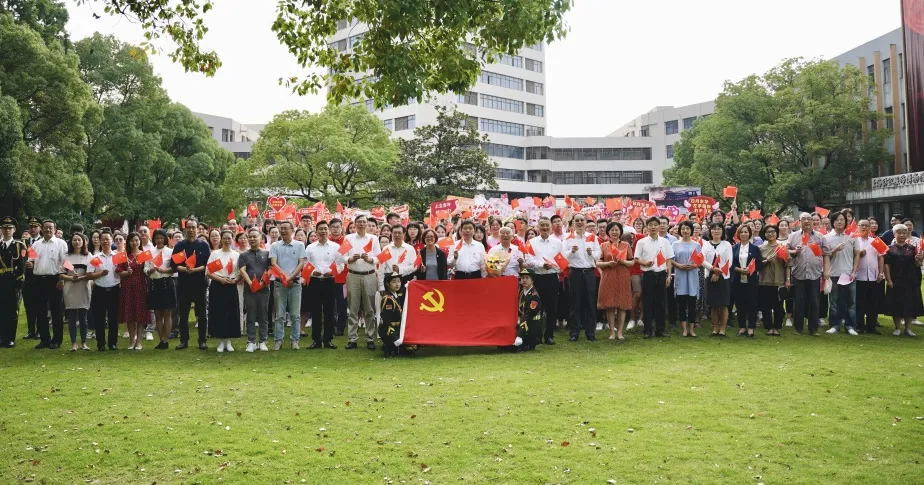 晨光初曦,东华校园微风轻飏、红旗漫卷,我校庆祝中国共产党成立100周年升旗仪式在两校区同步举行,上千名师生挥动鲜艳的党旗,在晨曦中向党深情告白。“光荣在党50年”纪念章获得者、我校退休教师贺善侃、梁方义,与00后青年学生党员从不同党龄、不同经历分享与中国共产党的故事,并带领全体党员重温入党誓词,完成两代人的信仰对话。100位东华学子创意排列成“100”字样的队形,退伍大学生代表带领全场高唱《没有共产党就没有新中国》,为党的100岁生日献上一份特殊的生日礼物。