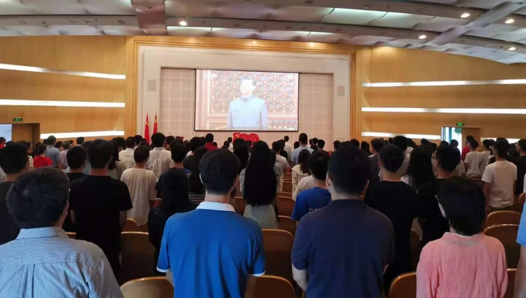 学校广大师生在报告厅、会议室、党员之家、实验室、寝室等场所,第一时间通过电视、网络、广播等多渠道集中收听收看大会现场直播盛况,认真聆听习近平总书记重要讲话,共同见证这一伟大历史时刻。各会场不时响起热烈掌声,并就“对中国共产党百年华诞感到欢欣鼓舞”“对建党百年来取得的伟大成就倍感振奋”“以实际行动贯彻落实总书记重要讲话精神”等展开热烈讨论。