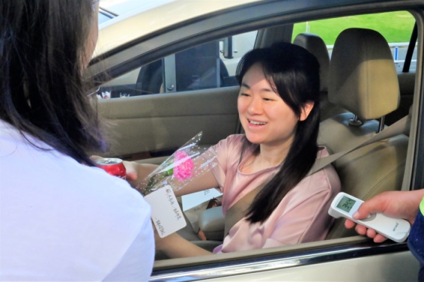 (学生为老师们送上鲜花和祝福)