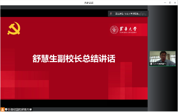 为深入学习贯彻习近平总书记在庆祝中国共产主义青年团成立100周年大会上的重要讲话精神,近日,纺织学院青春领航毕业班学生党支部通过线上会议的形式开展“青春心向党百年再启航”主题党日活动。副校长舒慧生出席活动,学院党委书记李成龙、院长顾伯洪以及党支部全体党员参加活动。活动由党支部书记陈欣园主持。