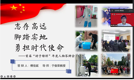 近日,材料学院首届“材子榜样”学生年度人物答辩会在“云端”举行。学校党委宣传部、教务处、研究生院、学生处、学生就业服务中心、团委等相关职能部处负责人,学院全体党政班子,教授委员会成员,导师代表,专职辅导员以及爱博基金发起人和捐赠人、爱博诺德医疗科技股份有限公司董事长解江冰校友参会并担任评审。