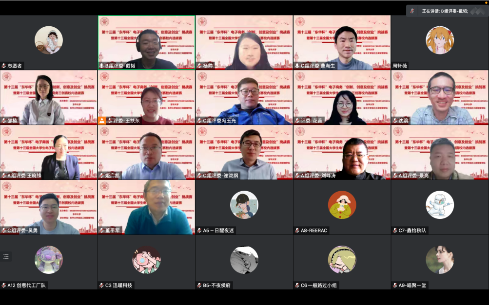 4月15日上午,第十三届“东华杯”电子商务“创新、创意及创业”挑战赛暨全国大学生电子商务“创新、创意及创业”挑战赛久久久久国产成人精品亚洲综合校内选拔赛采用线上会议的形式开展,参赛学生团队和评委老师共同参加。管理学院副院长杨帅教授致开幕欢迎词并宣读比赛评分标准,大赛由管理学院教师戴韬主持。