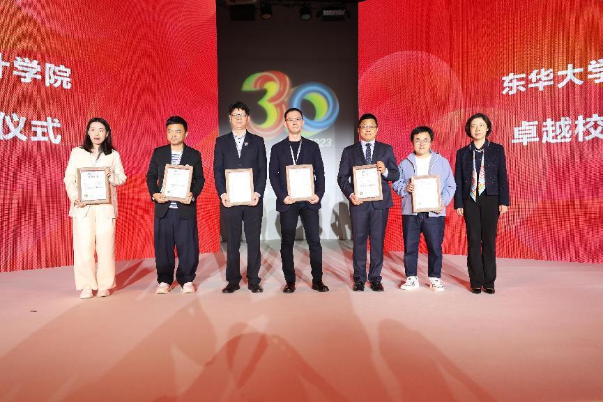 大会上,19名校友分获“杰出校友服务奖”与“卓越校友服务奖”。李炜为叶寿增、陈红朝、陈川、洪伯明、吴伟峰、张永涛、牛冬梅颁发“卓越校友服务奖”证书。东华——伟星未来时尚创新研究院揭牌成立。