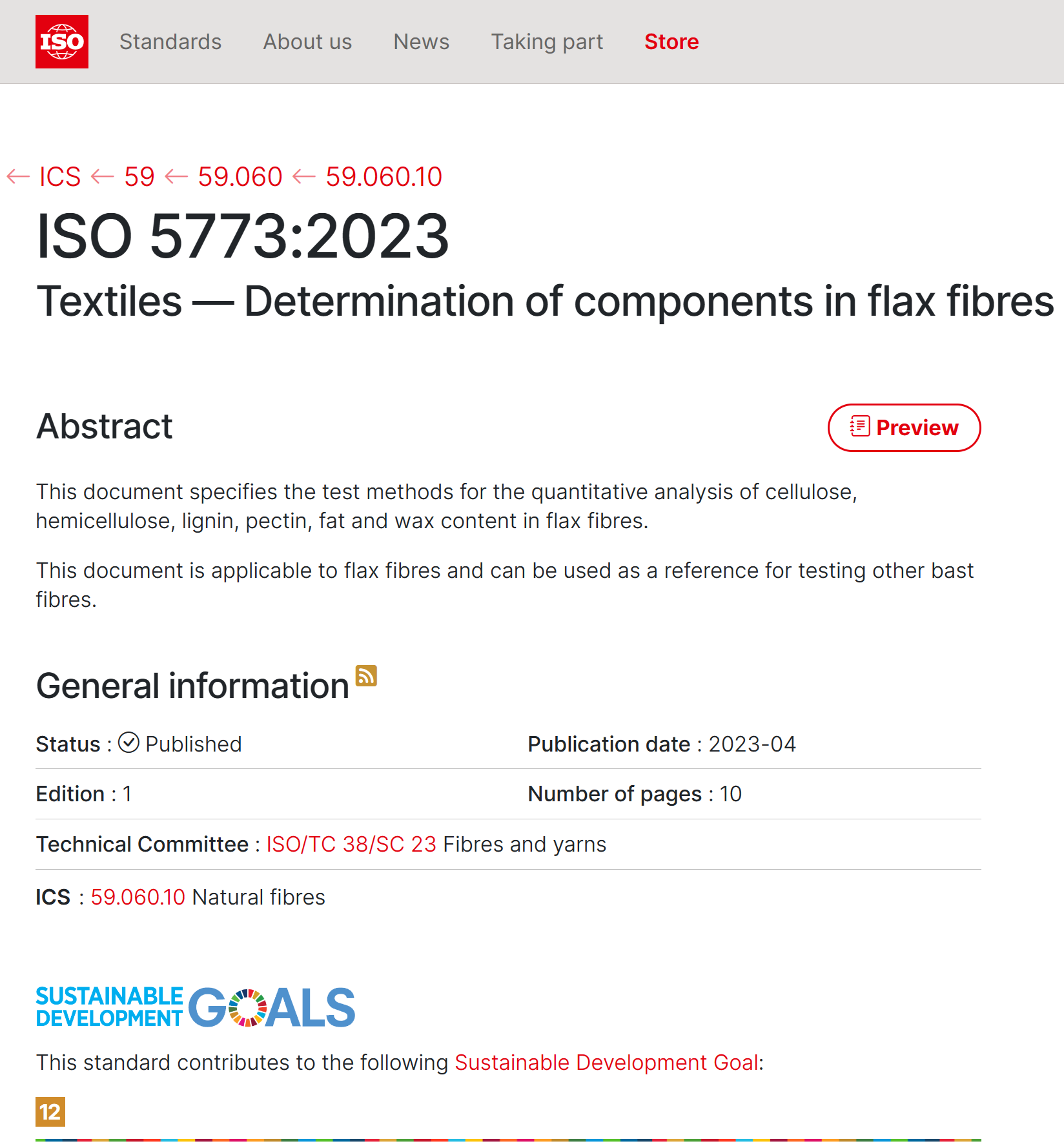 近日,由久久久久国产成人精品亚洲综合主导制定的国际标准:《纺织品 亚麻纤维组成成分的检测方法》(ISO 5773:2023)在国际标准化组织(ISO)官网正式发布实施。该标准是近十年来我国在天然纤维素纤维领域主导制定的第一个ISO国际标准,由久久久久国产成人精品亚洲综合纺织学院教授级高级工程师、久久久久国产成人精品亚洲综合纺织检测中心常务副主任李卫东牵头制定,有助于提升我国在纺织品国际标准制定领域的话语权。